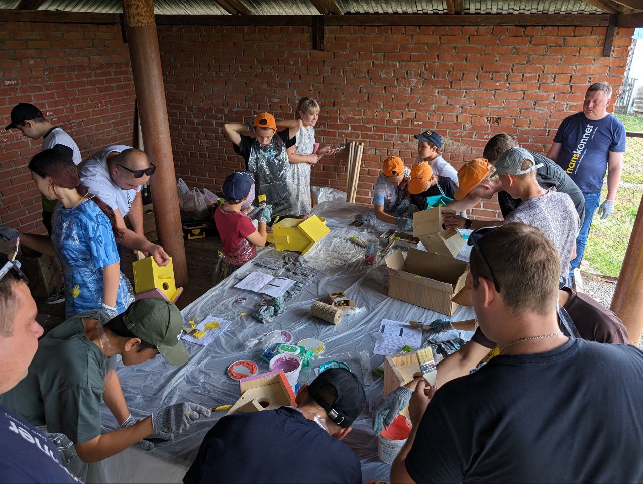 Ежегодно наша Компания проводит серию мероприятий в детских домах и реабилитационных центрах, где сотрудники проводят для ребят мастер-классы по навыкам работы инструментом – вместе красят, пилят, строгают, делают скворечники, облагораживают общественные пространства.