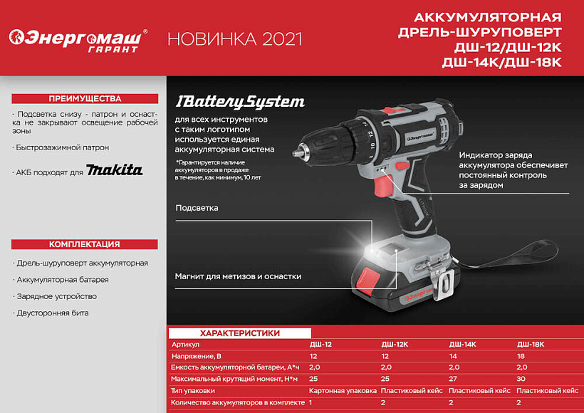 Аккумуляторный шуруповерт Энергомаш ДШ-12К