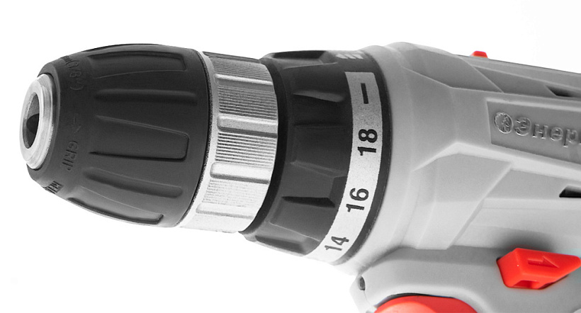 Прочный двухскоростной планетарный редуктор позволяет потребителю эффективно выполнять работы по сверлению в древесине, пластмассе и металле, Оптимальная регулировка силы крутящего момента, в 18 ступень + ступень сверления, позволяет устанавливать любой крепеж без его повреждения и вдавливания в материал.