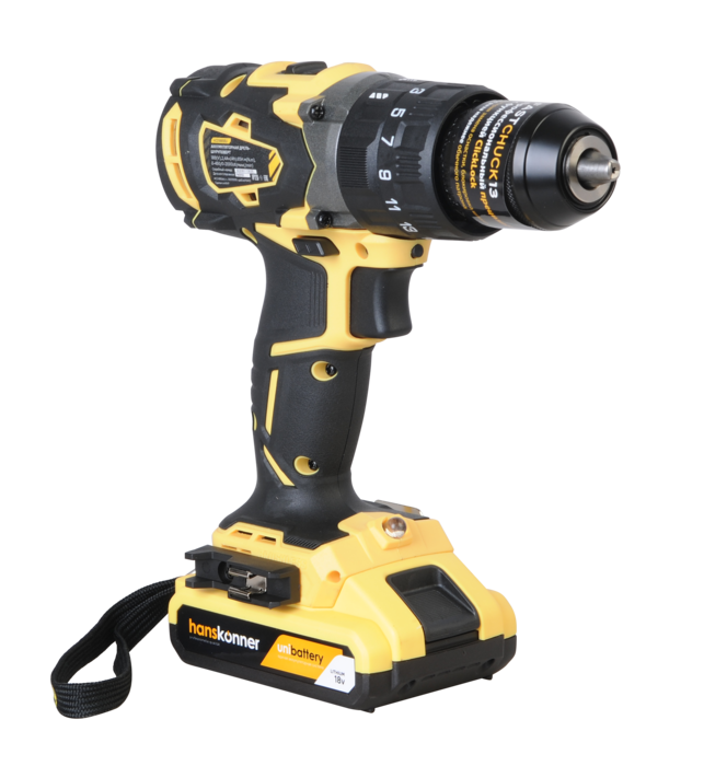 Hanskonner HCD1865BLI Unibattery – универсальный аккумуляторный 18В ударный двухскоростной шуруповерт – относится к линейке аккумуляторной системы Unibattery, обеспечивающей совместимость одного и того же аккумулятора с целым рядом наименований инструмента. Является одним из самых мощных и функциональных шуруповертов в своем классе и демонстрирует высокую эффективность не только при работах с крепежом, но и при сверлении в различных материалах, включая кирпич, камень и легкий бетон.