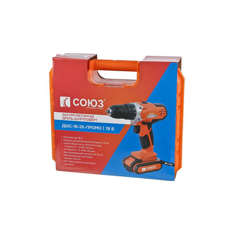Аккумуляторный шуруповерт СОЮЗ ДШС-18-2К-ПРОМО