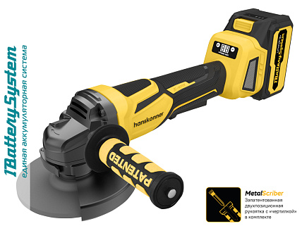 • Hanskonner HAG1812E – маневренная 18 В аккумуляторная болгарка (УШМ) под рабочий диаметр диска 125 мм – является частью системы 1BatterySystem и совместима со всей линейкой инструмента данной системы.