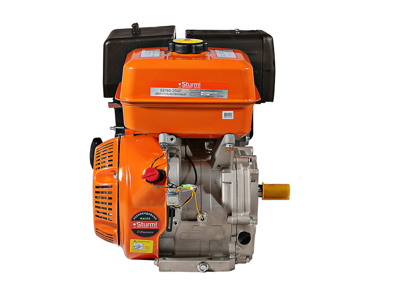Бензиновый двигатель Sturm! GE190-25SP  используется для установки на культиваторы, мотопомпы, снегоуборщики, скарификаторы и т.п
