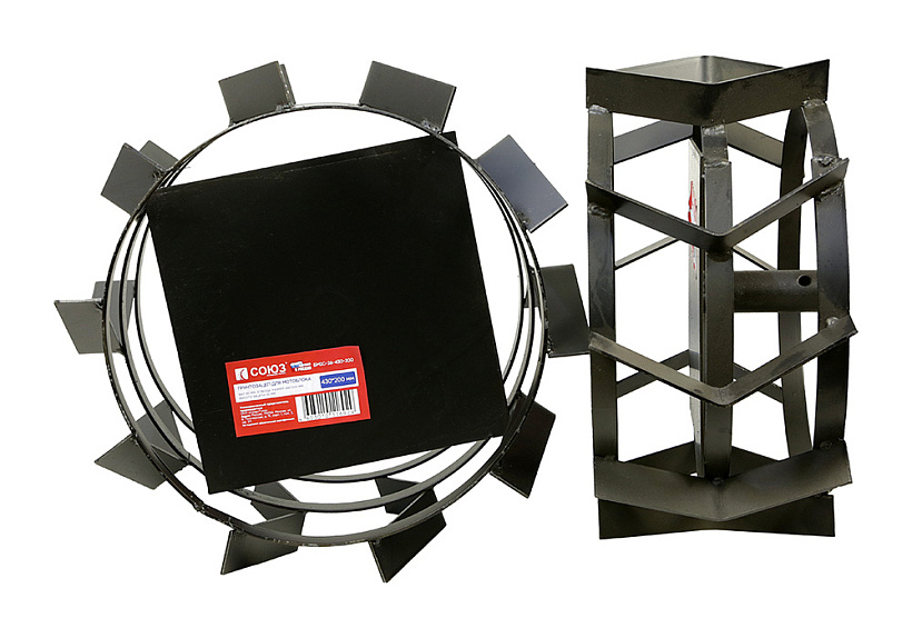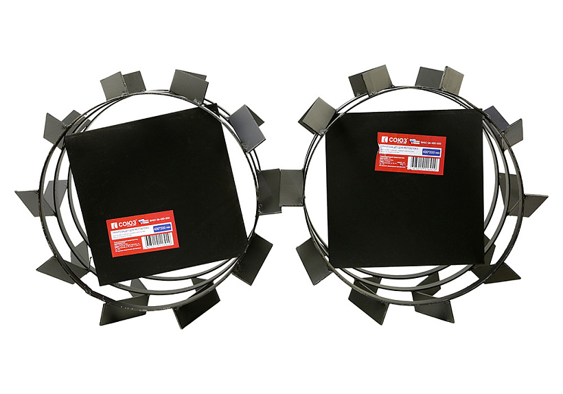 Грунтозацепы СОЮЗ БМС-26-430-200 используются в качестве замены резиновых колес и обеспечивают сцепление с грунтом при работе мотоблока. Колеса выполнены в виде нескольких полос металла со вваренными в середину листами металла Используется с мотоблоками: Ока, Нева, Каскад, Луч