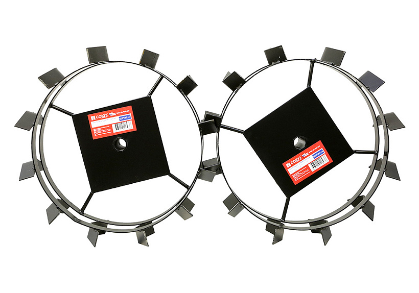 Грунтозацепы СОЮЗ БМС-26-500-130 используются в качестве замены резиновых колес и обеспечивают сцепление с грунтом при работе мотоблока. Колеса выполнены в виде нескольких полос металла со вваренными в середину листами металла. Используется с мотоблоками: Ока, Нева, Каскад, Луч