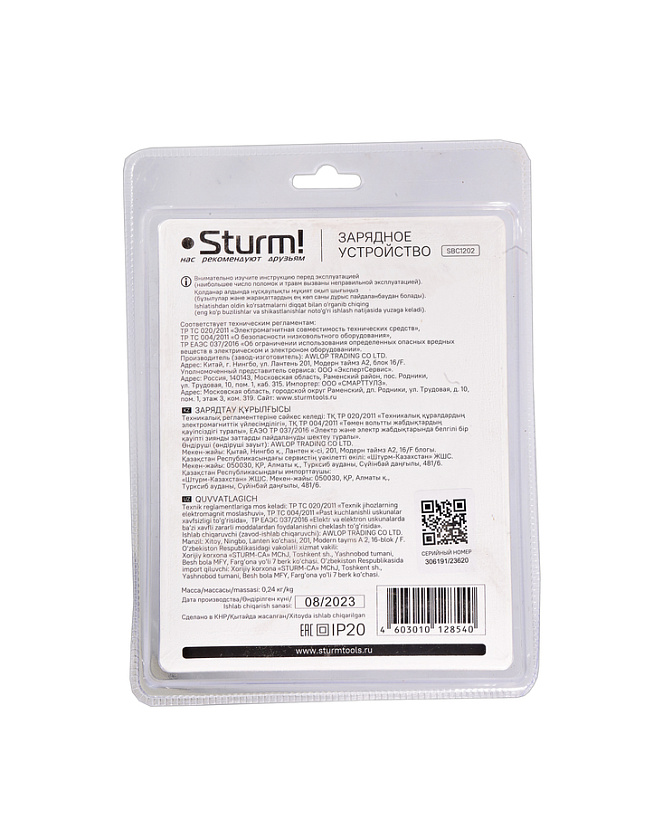 SBC1202 зарядное устройство Sturm! 1BatterySystem12V, 2.4 А