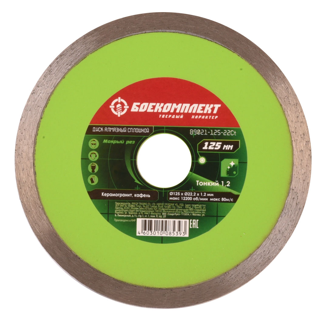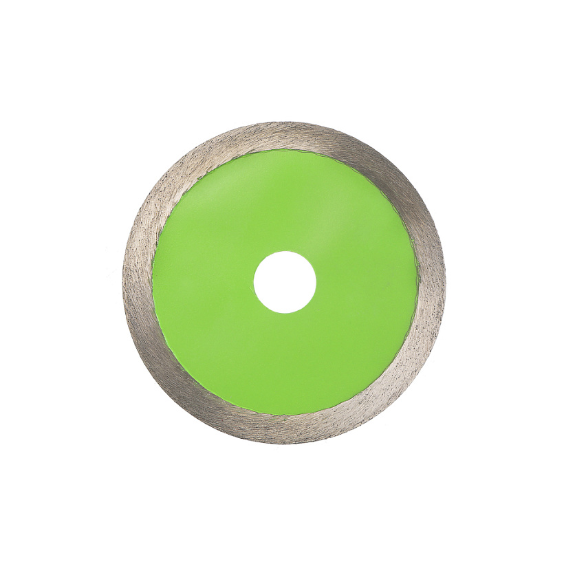 Диск алмазный сплошного типа для мокрой резки по кафелю, керамике и керамической плитке позволяет получить ровные края без сколов и трещин. Self-sharpening technology -Технология самозаточки позволяет диску сохранять высокую скорость реза даже при длительной работе. Тело диска из стали марки 65Mn и метод горячей опрессовки при производстве алмазных дисков увеличивает его износостойкость и срок эксплуатации. Правильно подобранные компоненты металлической связки обеспечивают постепенный равномерный износ алмазного слоя.