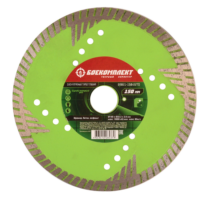 Алмазный диск 150x22,23 ТУРБО ГЛУБИНА, сухой рез, БОЕКОМПЛЕКТ