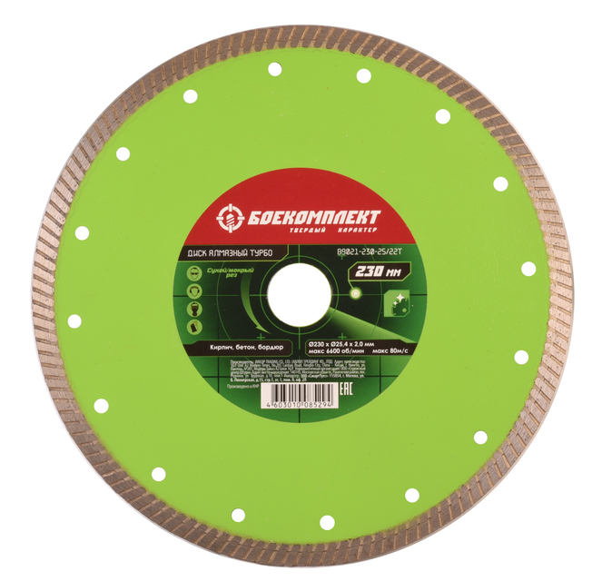Алмазный диск 230x25,4x22,23 ТУРБО, сухой рез, БОЕКОМПЛЕКТ