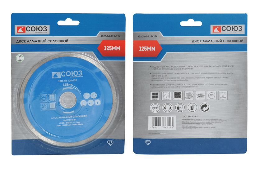 Диск алмазный СОЮЗ 9020-04-125x22K