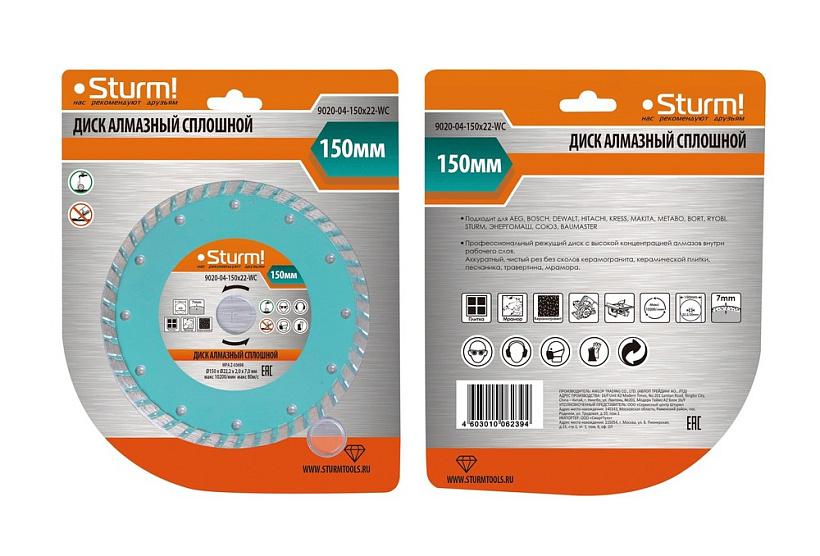 Алмазный диск, влажная резка, непрерывный 150мм Sturm!