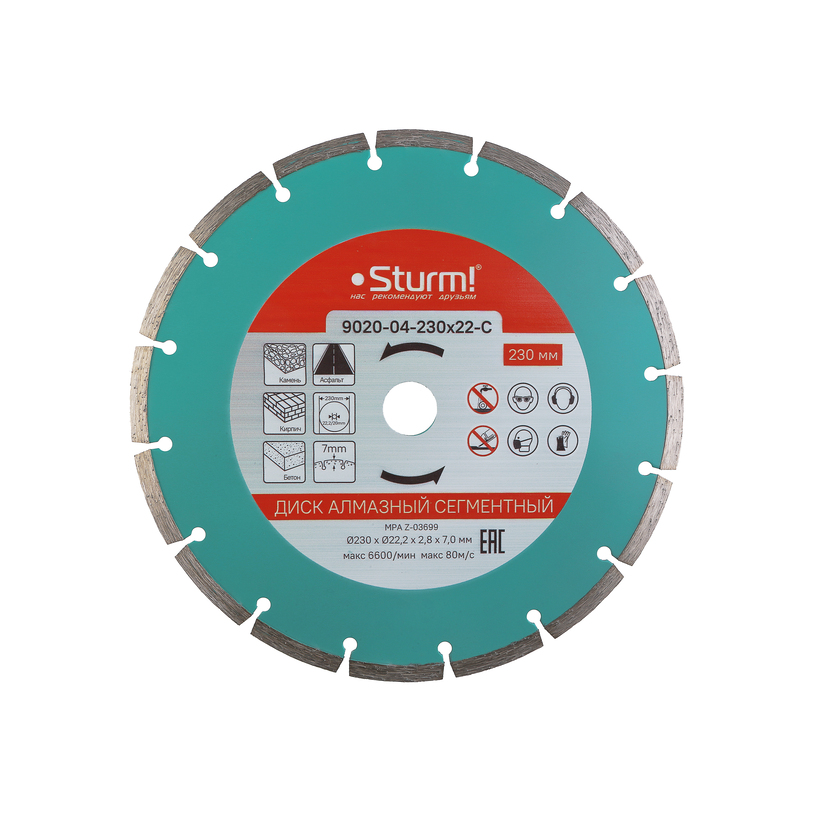 Сегментный алмазный диск, 230х22,2, Союз
