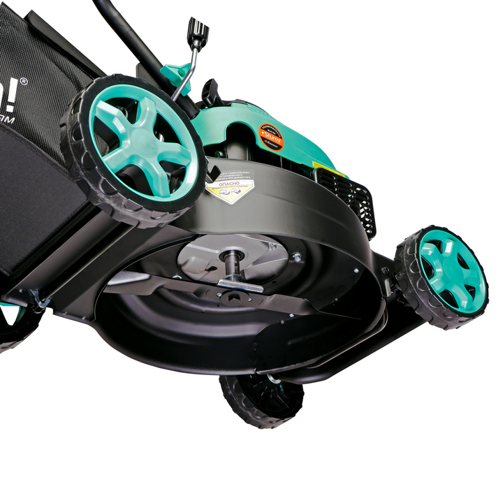 При весе 21,7 кг это одна из самых легких бензиновых газонокосилок с прочным стальным корпусом.