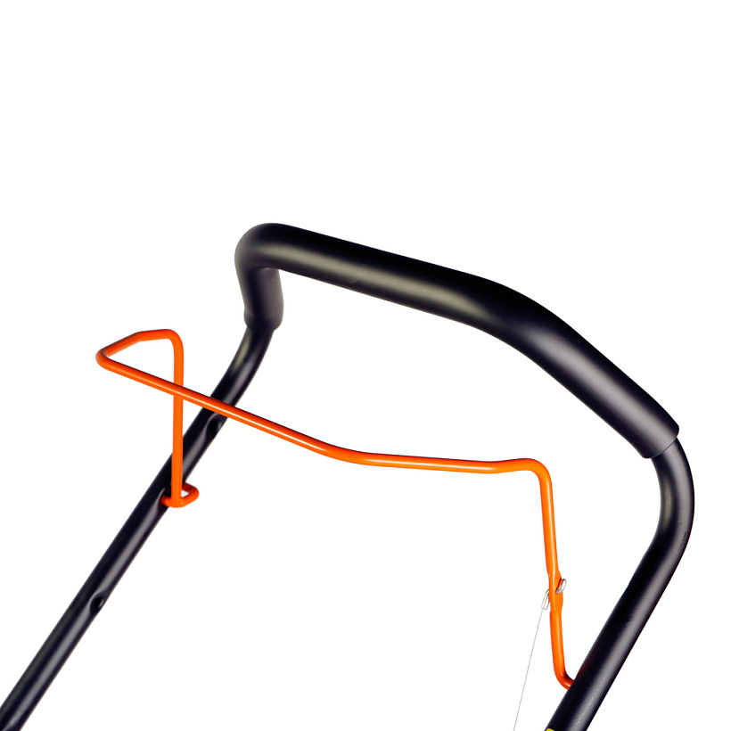 Для удобства хранения ручки могут складываться поверх газонокосилки, что делает хранение компактным и идеально подходит для небольшого садового сарая, гаража или при транспортировке в автомобиле.