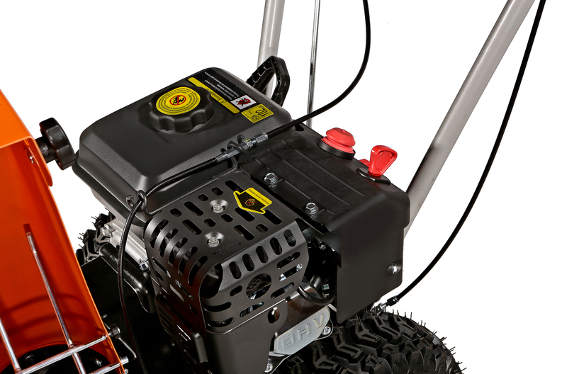 Sturm STG7453 — универсальный самоходный бензиновый снегоуборщик. Предназначен для расчистки территорий от снега различной плотности, как свежевыпавшего, так и слежавшегося. Модель оснащена надежным и неприхотливым четырехтактным двигателем KC, специально адаптированным для зимней эксплуатации, а также многоступенчатой трансмиссией, значительно повышающей универсальность машины. Конструкцией предусмотрены четыре скорости движения вперед и одна назад, выбор нужной скорости производится с помощью удобного рычага переключения. Низшая передача применяется при уборке плотно слежавшегося и мокрого снега, средние передачи — для работы со свежевыпавшим снегом, высшая передача — транспортный режим, предназначенный преимущественно для перемещения снегоуборщика. Высокая производительность машины обеспечивается не только мощным двигателем, но и продуманной конструкцией забора снега — этому способствует использование мощных агрессивных шнеков с большим профилем зуба, позволяющих легко справляться даже со слежавшимся снегом и настом, а также вместительного снегозагребного ковша, гарантирующего внушительную ширину прохода и возможность убирать сугробы до полуметра высотой. Снегоуборщик оснащен выпускным желобом с регулировкой как по направлению, так и углу выброса, благодаря чему пользователь без труда может настроить оптимальное расстояние, на которое будет отбрасываться снежная масса. Максимальная дальность выброса достигает 11 метров. Для лучшего сцепления с поверхностью модель комплектуется специальными шинами с глубоким протектором.