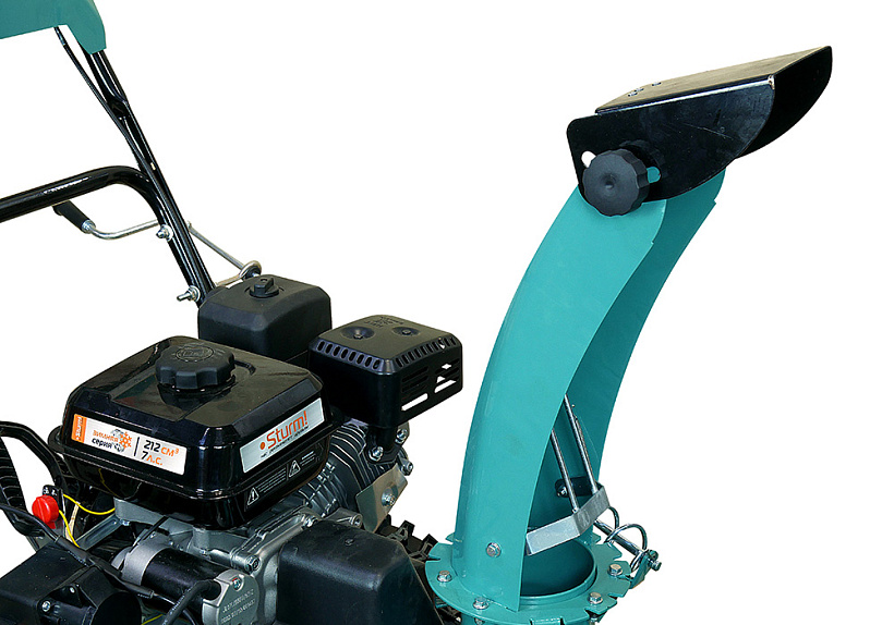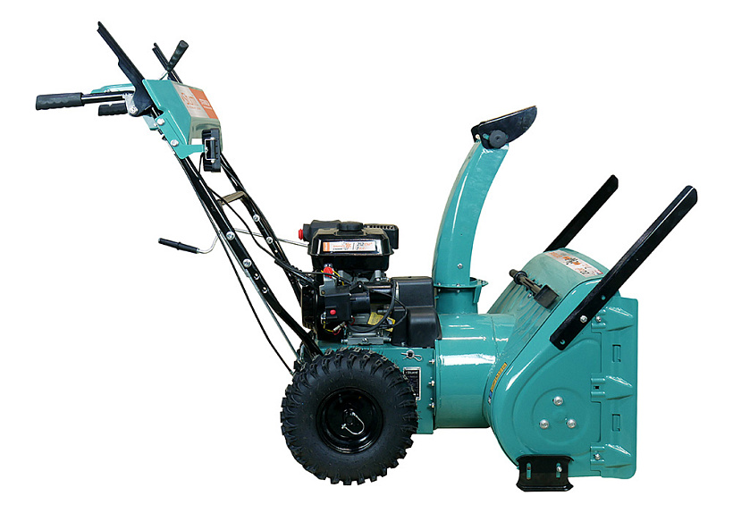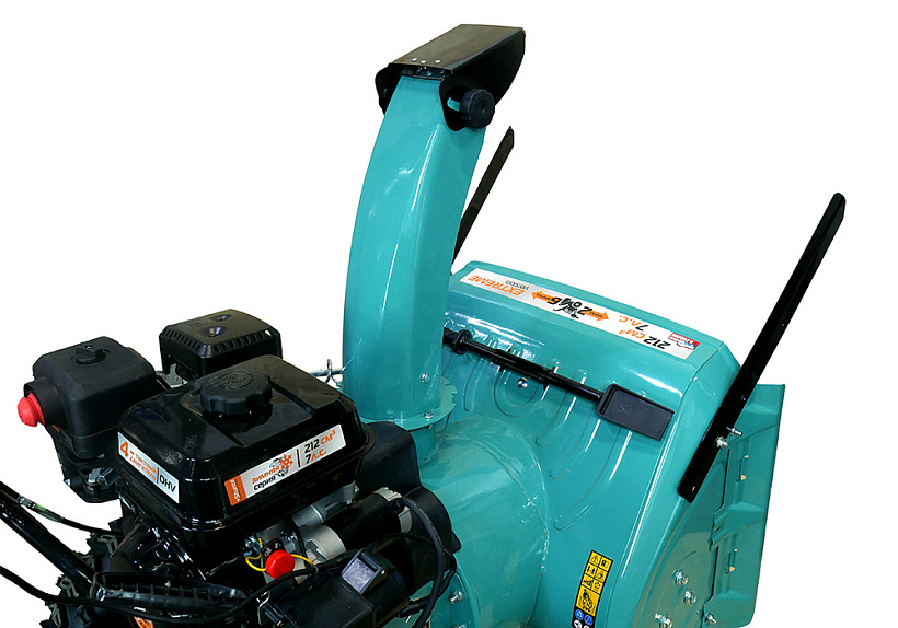 Зазубренный шнек первой ступени успешно измельчает слежавшийся снег и может справиться даже с настом толщиной до 2 см. Высокооборотистая вторая ступень снегоуборочного агрегата отбрасывает снег на расстояние до 12 м. Широкие колеса с развитым анти-снежным протектором позволяют уверенно двигаться по рыхлому снегу.