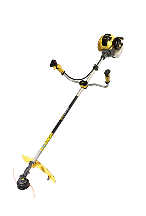 - Имеет мощный 2-х тактный двигатель объемом 43см3, что позволяет без проблем скашивать не только высокую сухую траву, но и молодую поросль кустарника.
