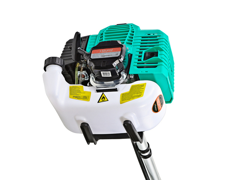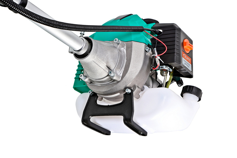 Усиленный металлический вал в сочетании с прямой штангой позволяет работать с большей мощностью. Топливный бак из прозрачного пластика облегчает контроль за уровнем топлива.