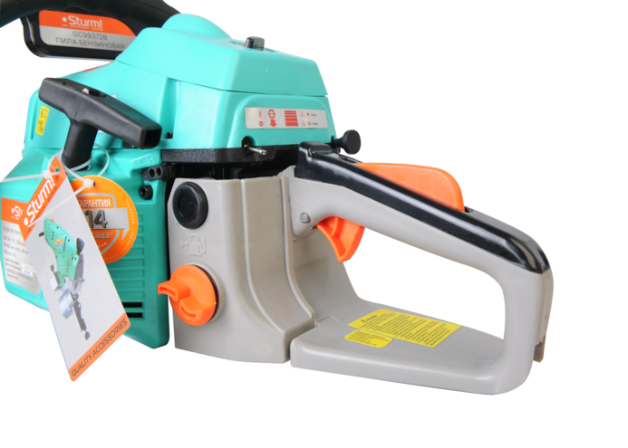 Sturm GC99372B — универсальная бензиновая пила бытового назначения. Уверенно справляется с работами по распилу древесины различной сложности и объема: от подрезания веток на садовом участке и вплоть до сезонной заготовки дров. Инструмент обладает оптимальными массово-габаритными показателями и нейтральным центром тяжести, что положительно влияет на маневренность и способствует лучшему контролю пилы в процессе использования. Модель оснащена производительным и экономичным двухтактным двигателем рабочим объемом 45 куб см и мощностью 1.9 кВт, а также пильной гарнитурой наиболее популярной размерности — 405 мм. Надежность и безотказность работы обеспечивает ряд конструктивных решений: хромоникелевое покрытие стенок цилиндра снижает вероятность повреждения его стенок при недостаточной смазке или перегреве, кованый коленчатый вал имеет высокую прочность и хорошо противостоит интенсивным нагрузкам, карбюратор нового поколения гарантирует стабильность работы двигателя при низких температурах. Снижению уровня вибрации способствует применение многоточечной антивибрационной системы. Модель проста в эксплуатации и не вызовет затруднений у пользователей, не обладающих достаточными навыками работы с бензопилами. Важной особенностью является боковое расположение механизма натяжения цепи, за счет чего существенно упрощается ее регулировка и исключается риск повреждения рук пользователя от случайного контакта с зубьями цепи. Благодаря системе облегченного старта со специальной дополнительной пружиной запуск бензопилы производится с меньшим усилием, а наличие праймера обеспечивает уверенный пуск инструмента после длительных перерывов в использовании. Возможность безынструментального доступа к карбюратору, фильтрующему элементу и свече зажигания обеспечивает удобство обслуживания пилы даже в самых неприспособленных условиях.