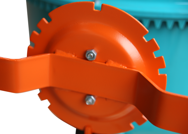 Ножной механизм фиксации положения барабана, который позволяет удерживать маховик для выгрузки смеси двумя руками.