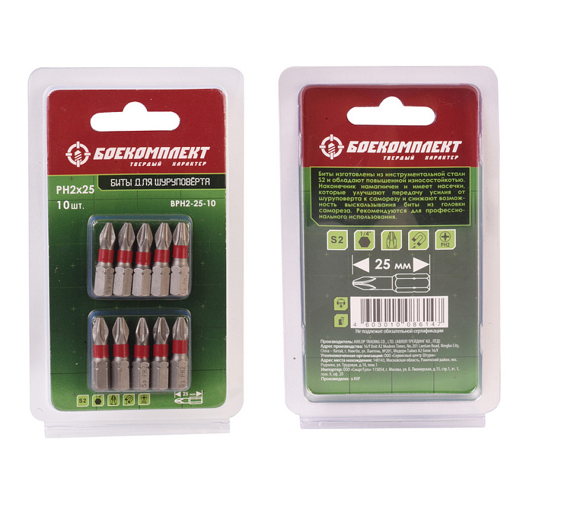 Биты PH2x25мм, сталь S2, 10шт, БОЕКОМПЛЕКТ