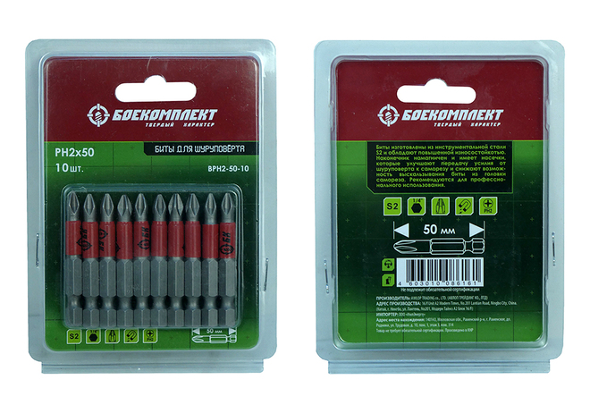 Биты PH2x50мм, сталь S2, 10шт, БОЕКОМПЛЕКТ