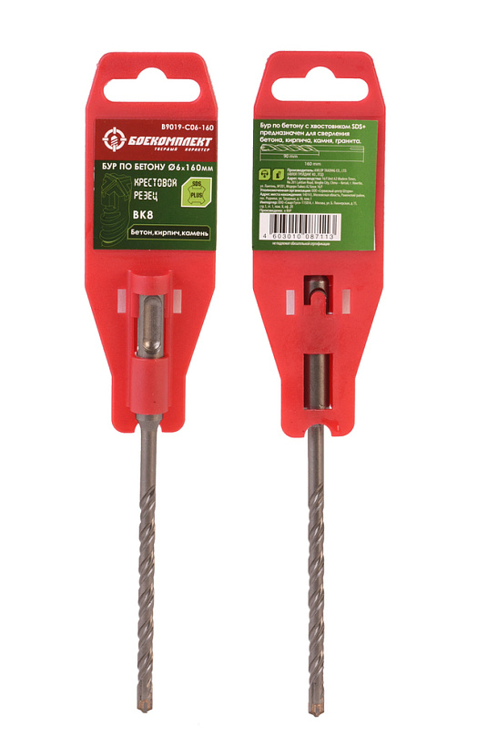 Бур SDS+ 06х160 крестовой резец ВК8 спираль S4 БОЕКОМПЛЕКТ