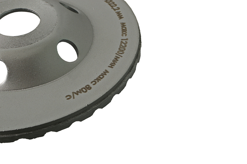 Высокая концентрация алмазов позволяет быстро шлифовать материалы, обладающие высокой твердостьюБольшой объем алмазосодержащего слоя, толщина алмазного слоя 5,2 мм, обеспечивает продолжительную работу чашки даже при интенсивном использовании