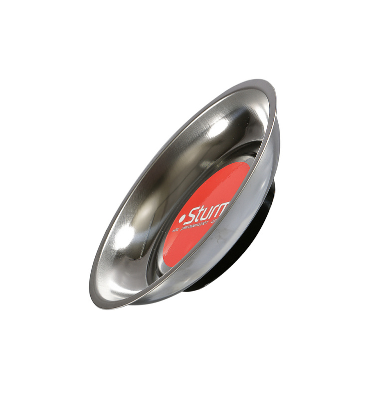 Магнитная тарелка для крепежа Sturm! 7003-6-3 - это удобная емкость для хранения метизов, крепежа и запчастей, которые могут понадобиться в процессе работы. Она надежно фиксируется на металлических объектах. Дно изделия выполнено из полимера, который защищает поверхности от царапин и повреждений. Магнитное поле обеспечивает сцепление с поверхностью и одновременно удерживает крепеж на дне конструкции. Такую чашу можно установить в любом положении: вертикально, горизонтально, под углом.