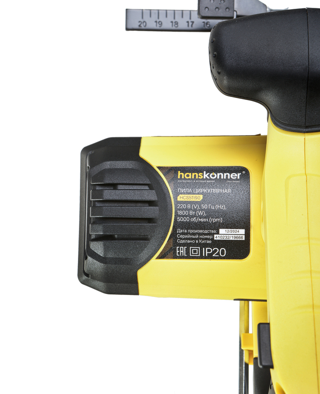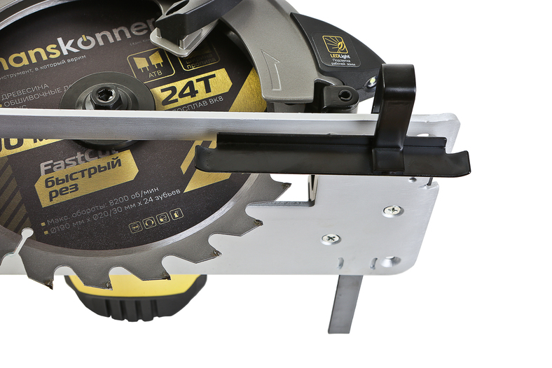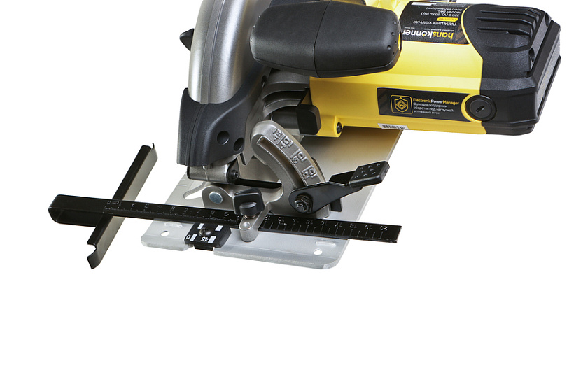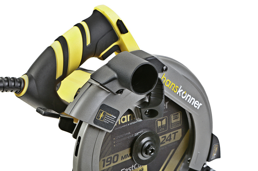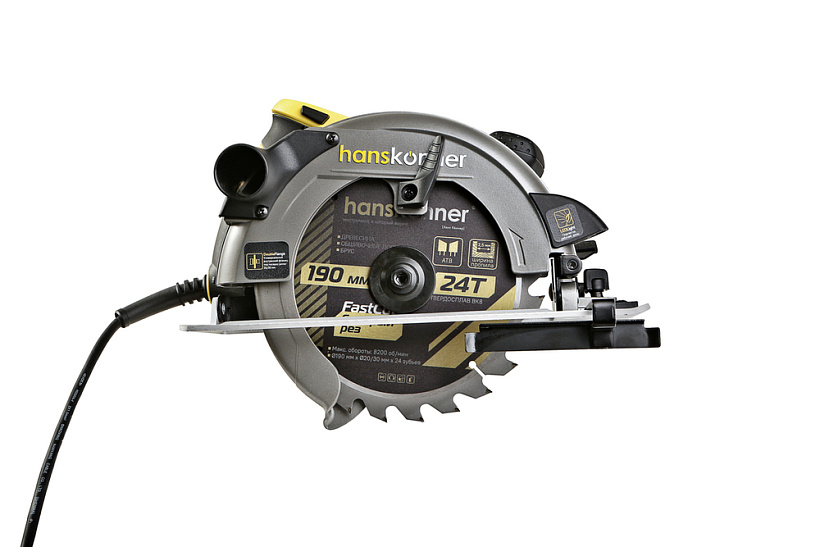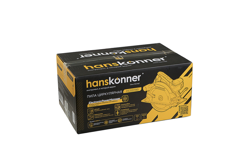 Hanskonner HCS51190 –надежная и производительная циркулярная пила под рабочий диаметр пильного диска 190 мм с возможностью стационарного крепления. Пила оснащена 1800 Вт электродвигателем MaxPower, высокопрочным редуктором и фирменными пылезащищенными подшипниками, благодаря чему способна выполнять больший объем работ в сравнении с бытовыми аналогами, и демонстрирует высокую эффективность не только с мягкими, но и твердыми породами древесины. Максимальная глубина пропила – 65 мм. Важная особенность модели Hanskonner HCS51190 – наличие блока константной электроники EPM (Electronic Power Manager), предотвращающего снижение рабочих оборотов под нагрузкой и обеспечивающего плавный запуск. Инструмент получил не склонную к деформации литую алюминиевую платформу, гарантирующую высокое качество производимого реза. Предусмотрена возможность точной настройки пилы на необходимую глубину пропила, а также возможность выполнения резов на угол от 0 до 45 градусов. Фиксация опорной платформы в требуемом наклонном положении осуществляется безыинструментальным способом – с помощью специального зажимного рычага, что значительно ускоряет и облегчает настройку перед работой. Для большего удобства пользователя модель имеет LED подсветку рабочей зоны, обеспечивающую отличную видимость линии реза даже при недостаточном освещении, а также функцию блокировки вала шпинделя, гарантирующую максимально быструю замену оснастки. Предусмотрена функция быстрого доступа к щеткам QuickChange, дающая возможность их быстрой замены, без демонтажа элементов корпуса. Благодаря применению сетевого кабеля 4VelcroRubber с резиновой изоляцией, в полной мере сохраняется его гибкость и эластичность в условиях низких температур. Четырехметровая длина кабеля обеспечивает рабочую зону площадью до 50 м2, а фиксатор-липучка способствует удобству хранения. Наличие патрубка позволяет подключать к инструменту строительный пылесос.