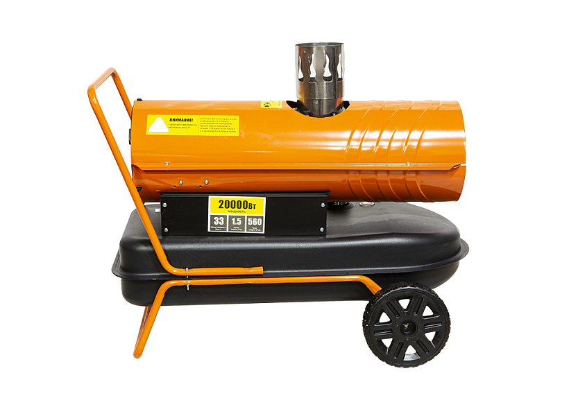 Дизельная тепловая пушка непрямого нагрева DKH20CH предназначена для работы как при строительстве или ремонте в производственных помещениях и на открытых площадках, так и в жилых помещениях. Модель оснащена теплообменником из высококачественной нержавеющей стали марки, разделяющим зоны горения топлива и нагрева воздуха. Благодаря данному трехходовому теплообменнику, КПД работы теплогенератора достигает уровня до 85%. Тепловая мощность - 20 кВт тепла, а производительность 560 м3/ч. Уникальная конструкция позволяет отводить продукты сгорания за пределы обогреваемого помещения. Для максимальной безопасности пушка оснащена системой защиты от перегрева, контролем стабилизации пламени.