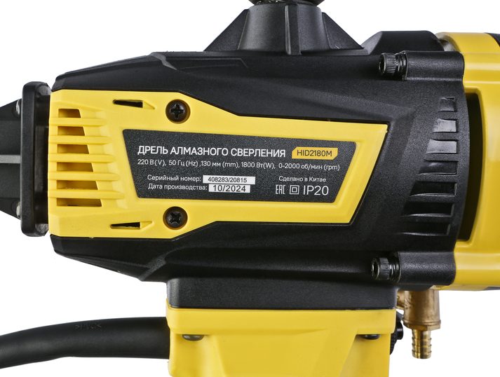 Дрель алмазного сверления Hanskonner HID2180M — компактный и мощный электроинструмент с надежной конструкцией для сверления алмазными коронками отверстий в таких материалах: бетон, железобетон, искусственный и натуральный камень, кирпич. Подключив инструмент к водопроводному крану можно сократить запыленность рабочей зоны, а также износ алмазных коронок и дрели. Данная модель оснащена предохранительной муфтой, срабатывающей при заклинивании коронки, и термозащитой работающей при других видах перегруженности.