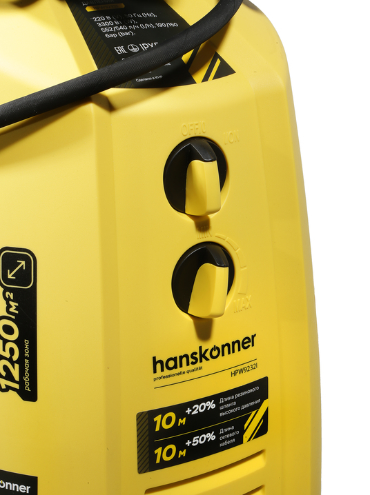 Hanskonner HPW9232I – универсальная мойка высокого давления линейки Professional – одна из самых мощных моек в классе. Отличается высокой надежностью и ресурсом. Благодаря грамотной эргономике удобна в эксплуатации. Большая производительность (номинальная производительность – 552 л/мин) и высокий показатель рабочего давления (рабочее давление – 150 бар) позволяют успешно использовать модель при очистке наиболее стойких загрязнений с различных поверхностей. Идеально подходит для очистки транспортных средств (грузовых/легковых автомобилей, с/х техники, яхт, лодок), фасадов зданий, садовых дорожек, плитки, бассейнов, сильно загрязненных поверхностей из камня, дерева, металла и пластика.