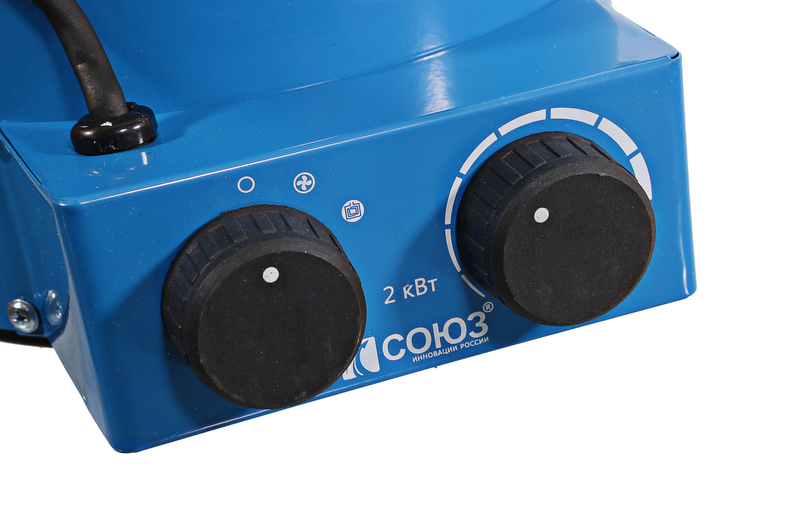 СОЮЗ ТПС-2027 — мощный мобильный обогреватель для временного или постоянного обогрева жилых, производственных и вспомогательных помещений площадью до 30 м2. Модель выполнена в прочном металлическом корпусе, устойчивым к возможным механическим повреждениям и имеет широкую опорную подошву, предотвращающую случайное опрокидывание. Небольшие габариты и вес модели способствуют удобству ее хранения и транспортировки. Обогреватель оснащен классическим нагревательным элементом спирального типа — он обеспечивает не только быстрый прогрев помещения, но и благодаря своей форме в виде спирали устойчив к попаданию внутрь устройства пыли и частиц абразива. Наличие мощного встроенного вентилятора позволяет обеспечить высокую производительность воздушного потока, проходящего через нагревательный элемент и ускорить циркуляцию нагретого воздуха в помещении. Управление обогревателем осуществляется посредством пары регуляторов, расположенных на верхней панели. С помощью первого регулятора пользователь выбирает один из двух предусмотренных режимов работы: вентиляция без нагрева/горячий обдув. Второй регулятор — управление настройкой термостата, задача которого — поддержание постоянной температуры в помещении. Безопасность устройства в процессе эксплуатации обеспечивает защита от перегрева.