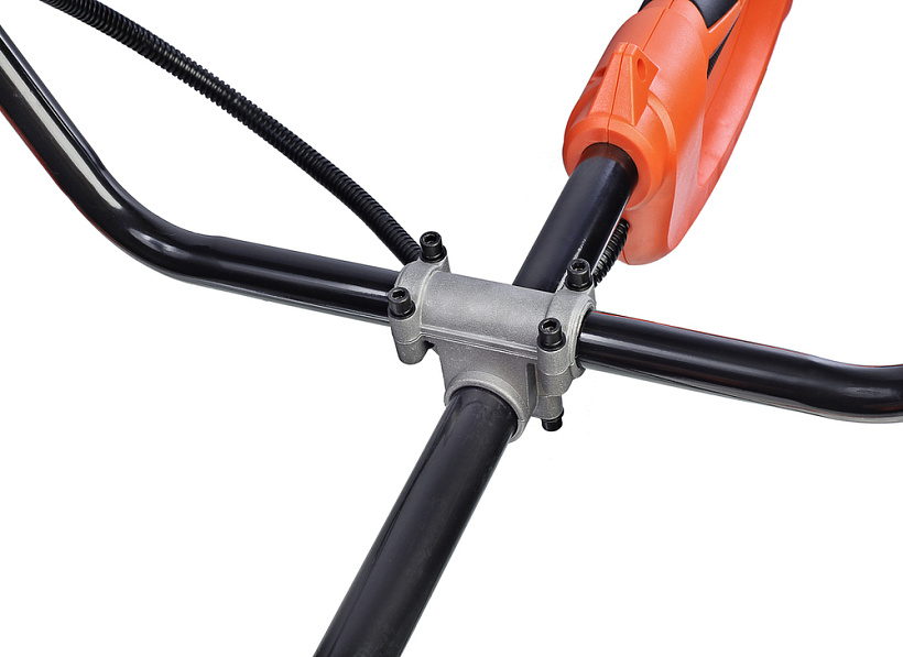 СОЮЗ ГКС-3525 — универсальная электрокоса для ухода за приусадебной территорией. Модель оснащена производительным 2,5 кВт мотором, развивающим максимальную частоту вращения режущей оснастки 6000 об/мин, что способствует эффективности и качеству работы. Высокие показатели по мощности, а также наличие в конструкции металлического приводного вала и прочного редуктора позволяют уверенно применять СОЮЗ ГКС-3525 в тандеме с различными типами оснастки, включая не только косильные катушки, но и металлические трехлопастные ножи для скашивания жесткой перезрелой травы и бурьяна. Компоновка с верхним расположением двигателя дает возможность использовать электрокосу для скашивания мокрой травы, так как исключается непосредственный контакт влаги с электрочастью. Кроме того, в сравнении с моделями с нижним расположением мотора, забор воздуха для охлаждения производится значительно выше зоны резания, что снижает вероятность попадания в электромотор различных абразивных частиц и пыли. Важной особенностью электрокосы является разборная двухсоставная штанга, обеспечивающая повышенное удобство при транспортировке и хранении — в случае необходимости пользователь может максимально быстро и легко разобрать штангу, тем самым, сокращая ее габаритную длину. Благодаря отличной эргономике и относительно небольшой массе инструмент очень удобен в использовании. Значительный комфорт для пользователя обеспечивает применение на модели СОЮЗ ГКС-3525 Т-образной рукояти «велосипедного типа»: она позволяет лучше контролировать электрокосу в процессе работы. Рукоять имеет возможность продольной регулировки. В штатную комплектацию инструмента входят катушка с леской, металлический трехлопастной нож и наплечный ремень.