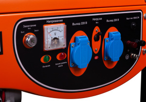 Панель управления оснащена контрольным вольтметром, двумя пыле-влагозащищенными розетками переменного тока 220В/16А с автоматическими крышками для универсального обеспечения электропитания потребителей различного класса.