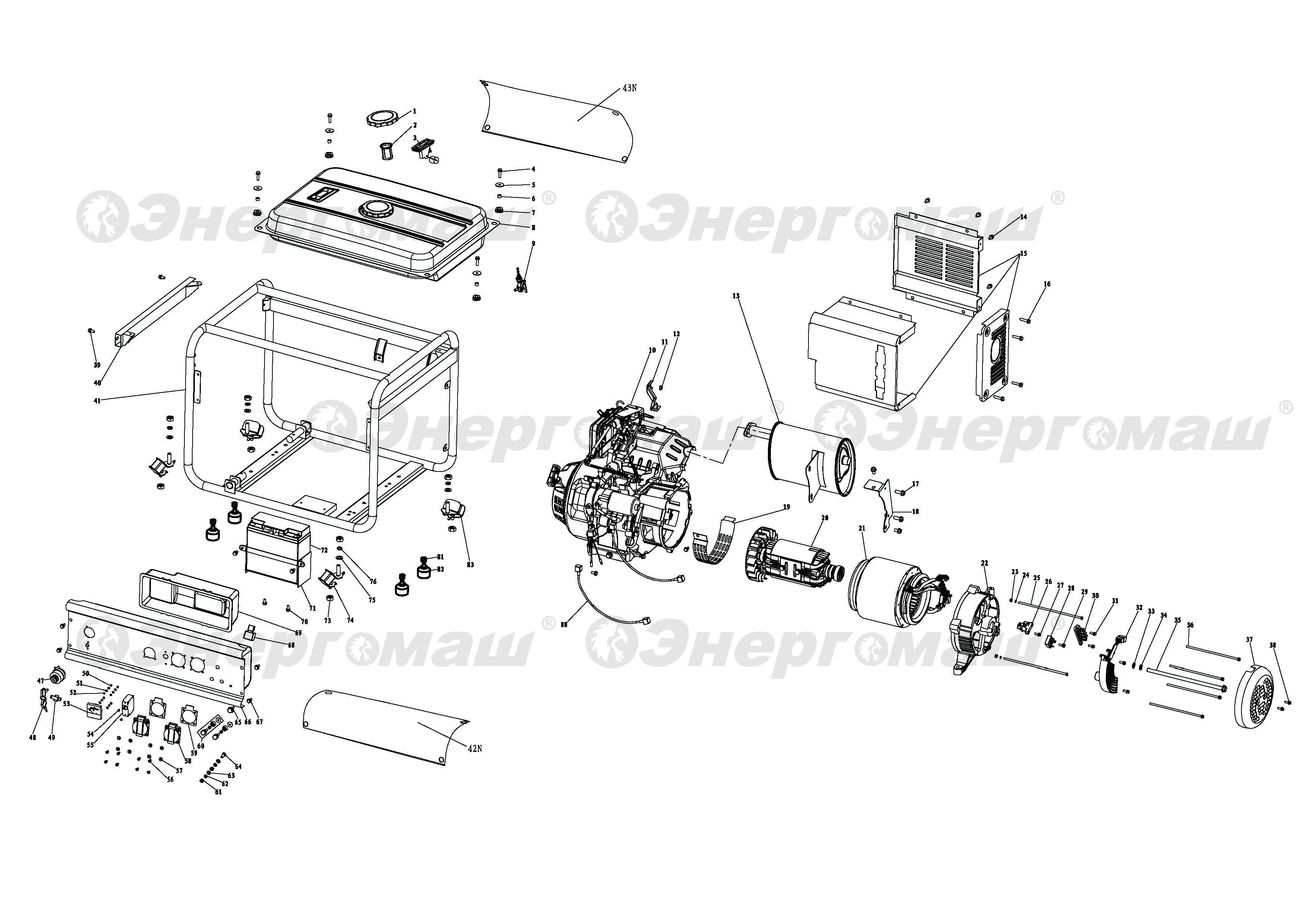 Прочный рамный каркас из закаленной стальной трубы защищает двигатель и топливный бак.