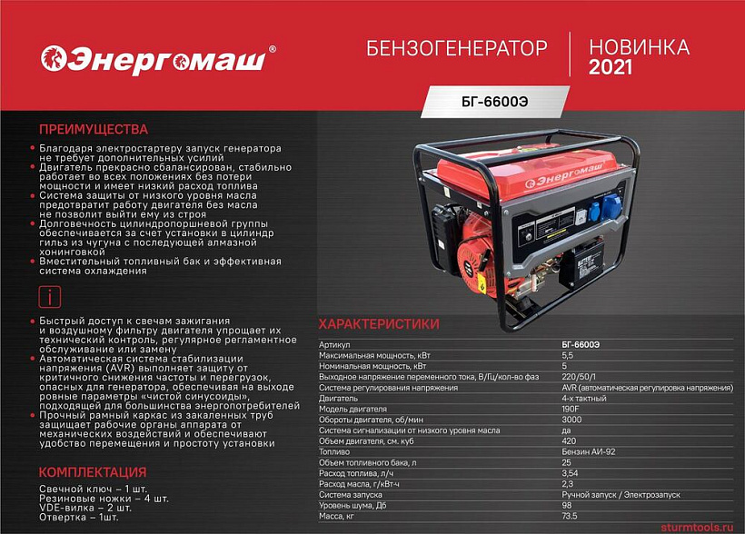 Генератор Энергомаш БГ-6600Э — универсальная профессиональная однофазная мини-электростанция для продолжительной и интенсивной работы.