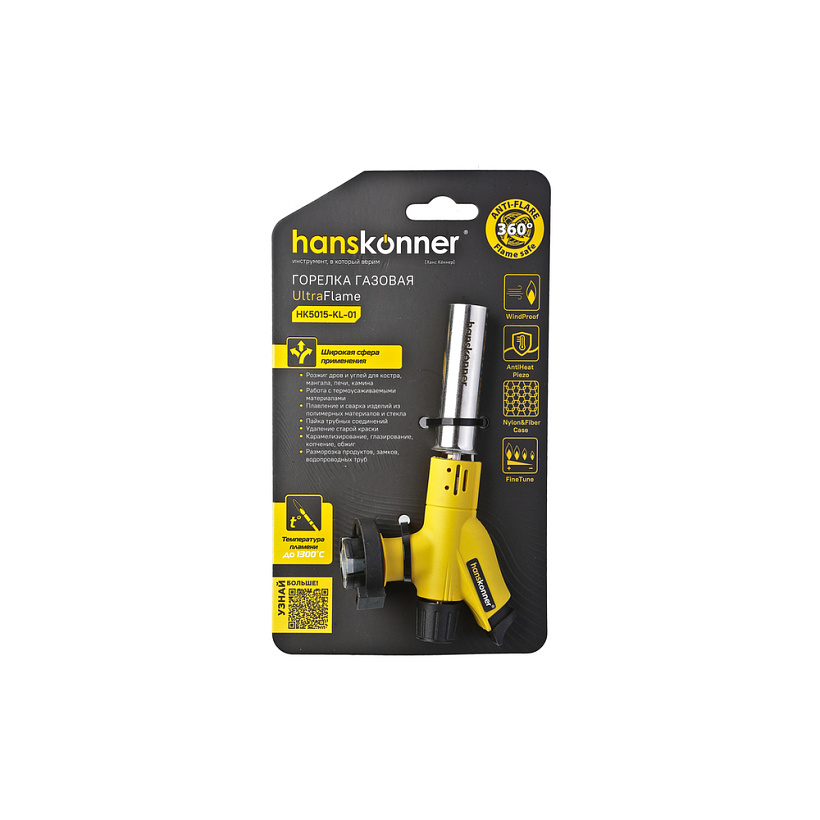 Горелка газовая, пьезоподжиг, защита от вспышек, hanskonner