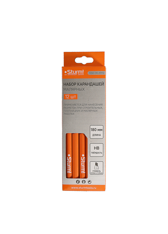 Набор карандашей малярных Sturm! 1090-06-KM12 служит для нанесения графических разметок. Применяется при строительных, плотницких и малярных работах.