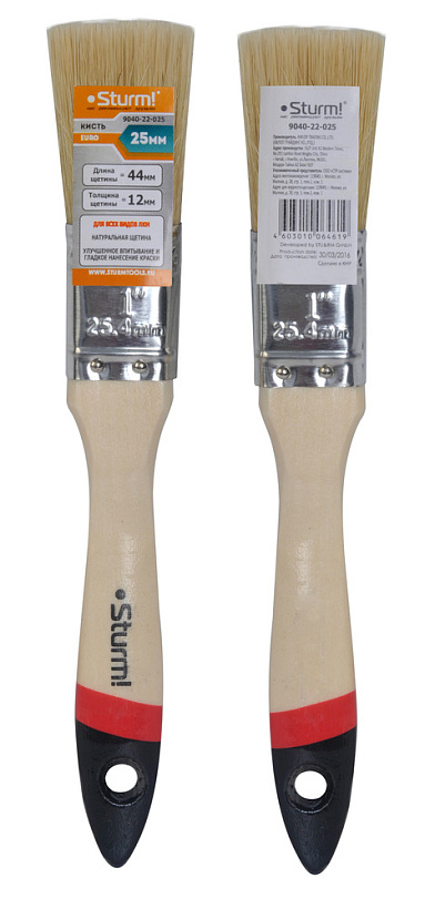 Кисть плоская "Euro" 1" (25 мм), натуральная щетина Sturm!