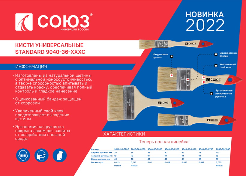 Кисть плоская Standard 1,5"(38 мм), натуральная щетина СОЮЗ