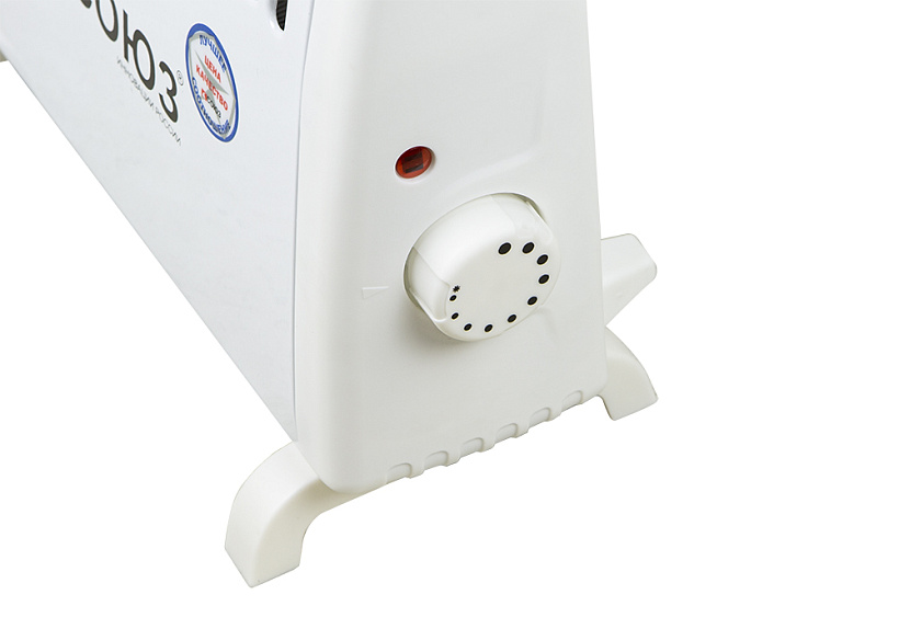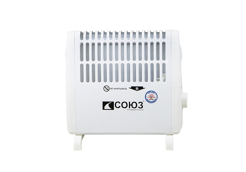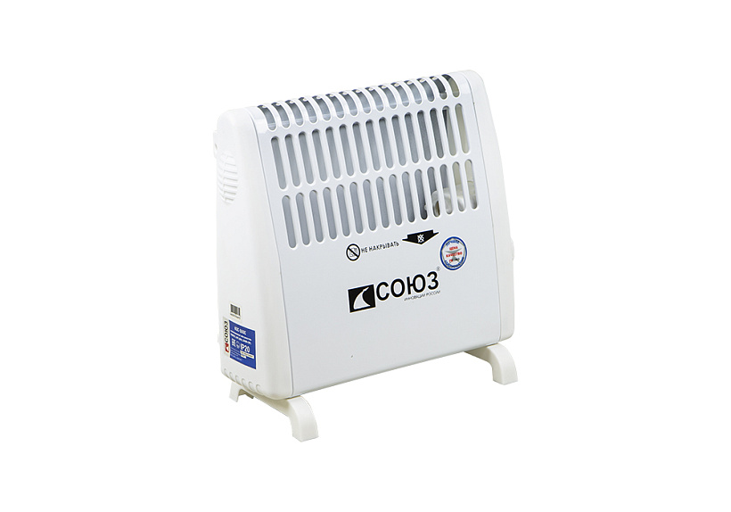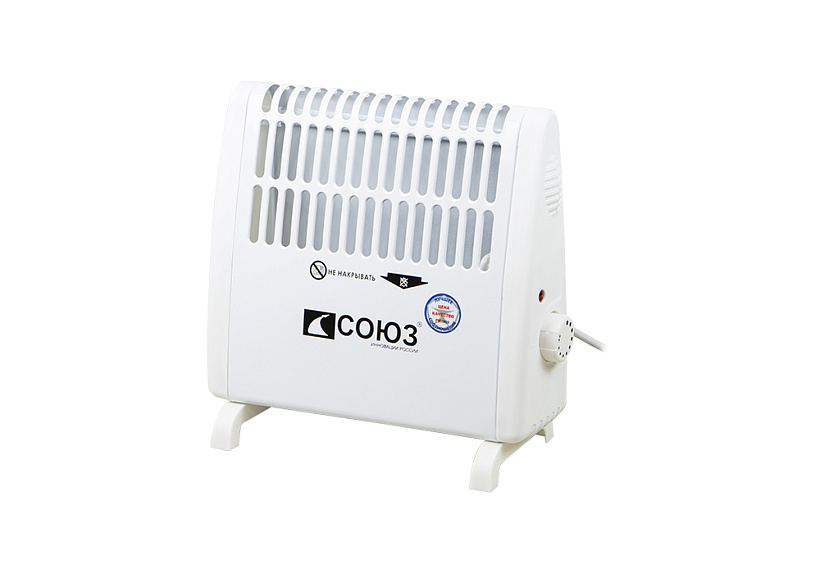 СОЮЗ КОС-500С— мобильный конвекционный обогреватель мощностью 450 Вт. Предназначен для временного или постоянного обогрева жилых и вспомогательных помещений площадью до 10 м2. Благодаря современному интерьерному дизайну, обогреватель гармонично вписывается в любой стиль помещения, а компактные габаритные размеры прибора и его минимальный вес гарантируют удобство его транспортировки и хранения.   Устройство абсолютно бесшумно в работе, что положительно влияет на комфорт эксплуатации. Модель СОЮЗ КОС-500С оснащена надежным, изготовленным из хромоникелевого сплава и покрытым термостойким лаком, игольчатым СТИЧ нагревательным элементом, гарантирующим максимально быстрый прогрев помещения. Поддержание оптимального температурного режима в помещении обеспечивает термостат с возможностью ручной регулировки. Визуальному контролю включенного устройства способствует специальный индикатор питания. За безопасность использования отвечает защита от перегрева.