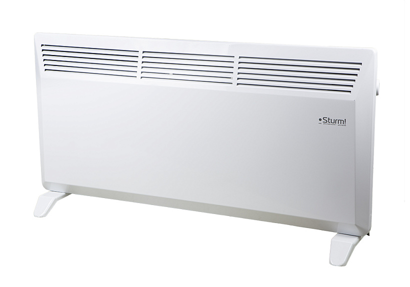 Конвекционный обогреватель Sturm! CH2000RF. Эффективный алюминиевый нагревательный элемент X-Shape обеспечивает быстрый нагрев помещения. Регулируемый термостат позволяет установить комфортную температуру и поддерживать ее в автоматическом режиме. Интерьерный дизайн панели с минимумом горизонтальных поверхностей для избегания скопления пыли. Датчик опрокидывания отключает нагревательный элемент при случайном падении обогревателя. В комплект поставки входят ножки и кронштейны для напольного и настенного размещения.