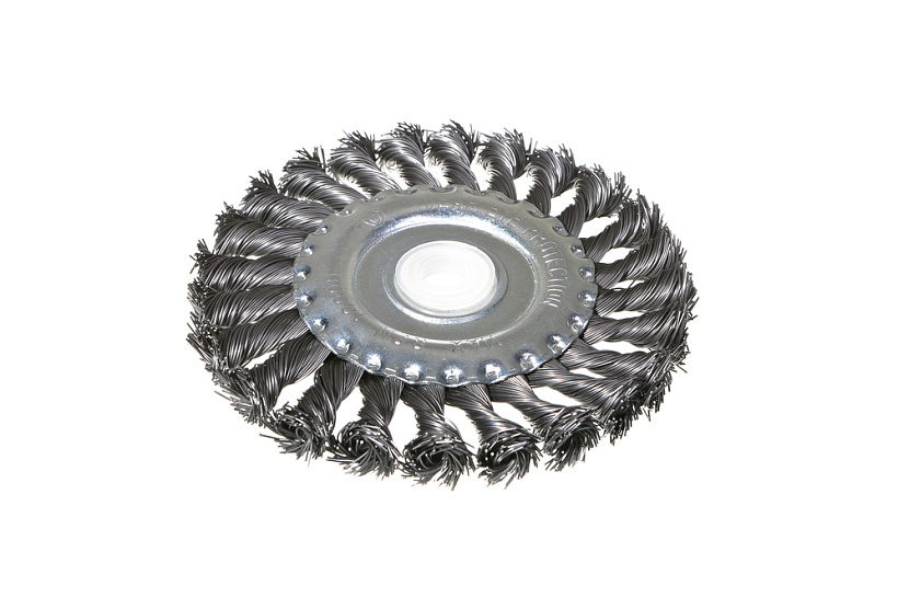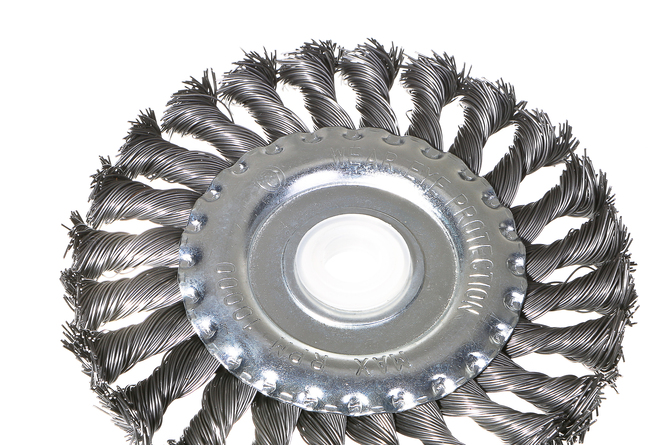 Корщетка-насадка является сменным элементом для УШМ. Щетка применяется для шлифовки, полирования, зачистки от лака, краски и коррозии различных поверхностей и изделий. Рабочая часть состоит из скрученной в пучки стальной проволоки. Специальная форма щетки в виде диска и упругие плетеные пучки позволяют работать в труднодоступных местах.