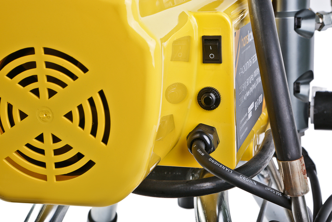 Краскопульт безвоздушный Hanskonner HSG9663B — надежный и продуктивный электроинструмент для нанесения лакокрасочных материалов без использования сжатого воздуха. Из-за большого перепада давления, от 210 Бар в насосе до атмосферного в пространстве, лакокрасочный материал дробиться на мельчайшие частицы и в виде аэрозольного факела оседает на окрашиваемой поверхности. Данная модель отличается качественной механической системой управления давлением, что дает возможность осуществлять интерьерную покраску.