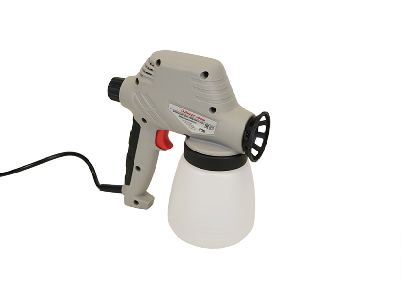 Нижнее расположение резервуара для краски и малый вес распылителя делает инструмент удобным при длительном использовании.