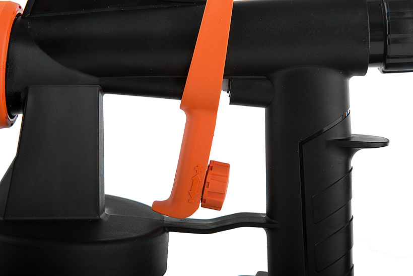Трехступенчатая регулировка сопла может с высокой точностью настроить распыляемую струю, а плавная установка расхода краски поможет получить превосходный результат на любой поверхности.