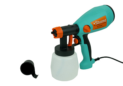 - Sturm SG9641 – универсальный компактный краскораспылитель – предназначен для распыления лакокрасочных материалов, как водорастворимых, так и на основе растворителей, вязкостью до 35 DIN.