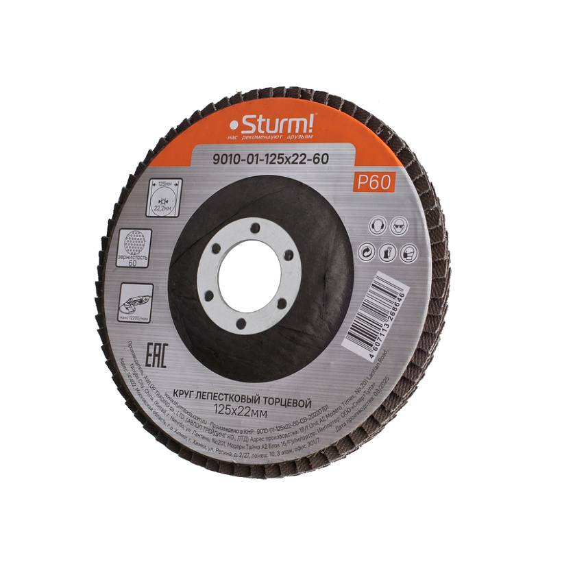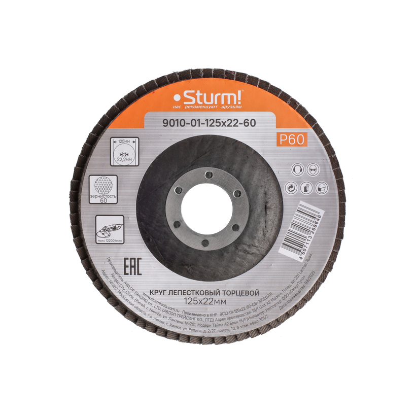 Круг зачистной, лепестковый, 125х22мм, Р60, Sturm!